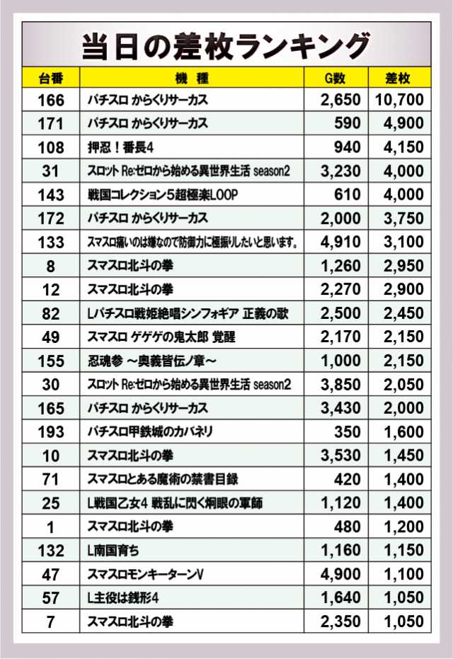 ※記事内の差枚表記はぱちタウン独自調査に基づくものです。ご了承ください。