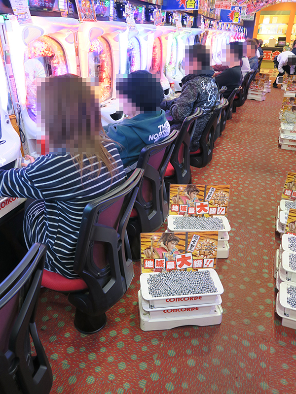 午後の4円パチンココーナーでは、「ぱちんこCR真・北斗無双」や「CR花の慶次X~雲のかなたに~」などの定番機種で活躍をみせるプレイヤーが多数。稼働率はもちろん、そのコーナーが放つ熱気は取材時のトップクラスであった。