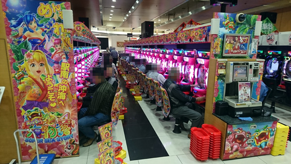 4円パチンコを見てみると、「CRスーパー海物語IN沖縄4」と「CR花の慶次X~雲のかなたに~」が大盛況。明るい表情のプレイヤーが多く、充実した時間を過ごせていたようだ。