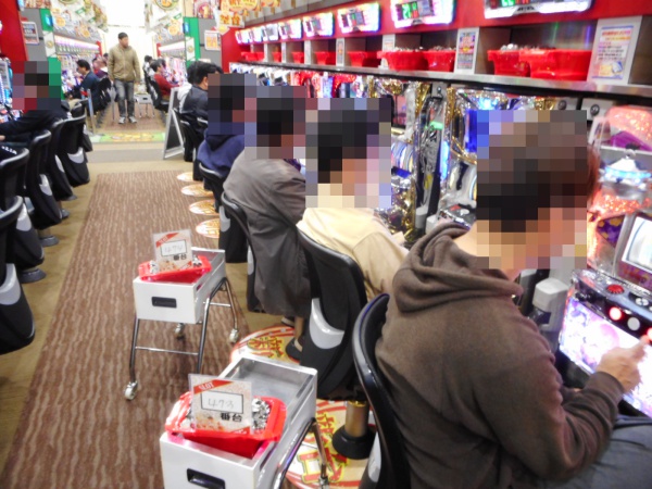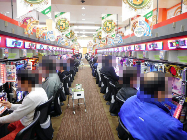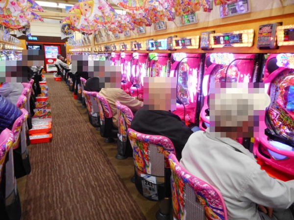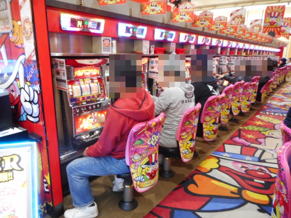 店内は大勢のプレイヤーが訪れており、パチンコ・パチスロともに活気づいていた。