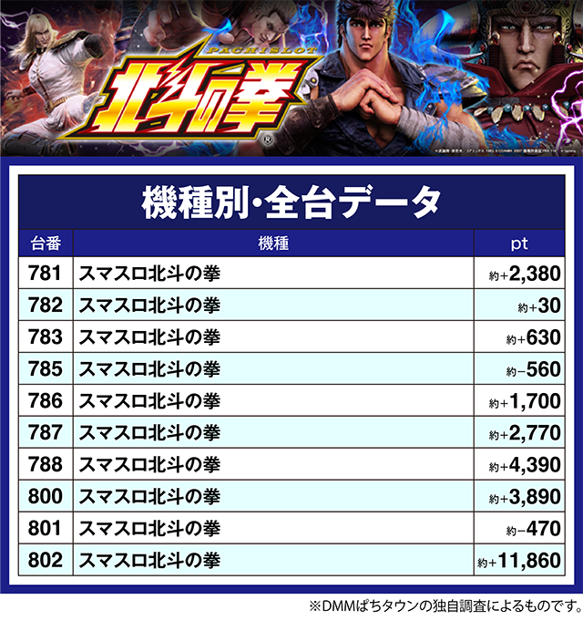 「スマスロ北斗の拳」の802番台が約+11,860pt!