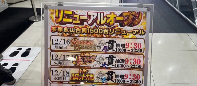 新潟県を始まりの地に、最近では静岡県・神奈川県に拡大している「スーパースロット大戦」取材。今回、東京都で初進出となったのが「ゴードン永山店」。多摩市に位置し、12月は店舗の50周年アニバーサリー、その上リニューアルから10日強と見どころ満載のホールだ。なお、この度は系列店の「ゴードン多摩センターA館」との同時実施と相成った。