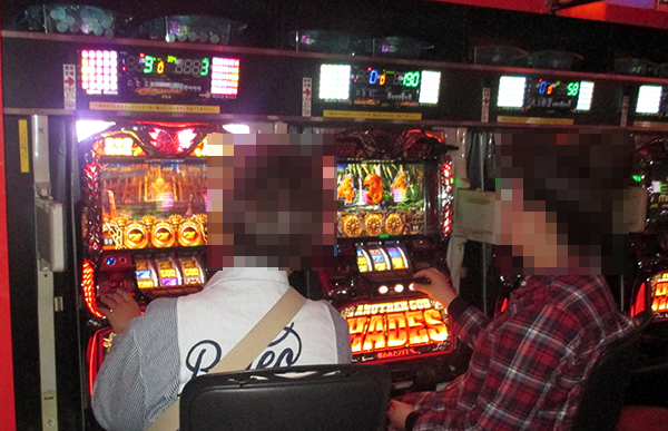 15時をまわった頃のパチスロでは、「バジリスク~甲賀忍法帖~絆」と「アナザーゴッドハーデス」が盛況。機種の特徴を活かしているようなプレイヤーが目立ち、明るい笑顔もみられた。