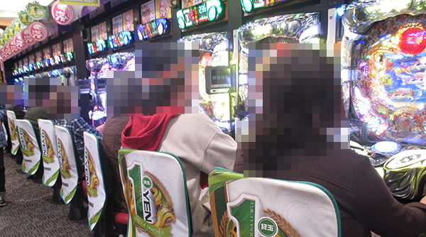 4円パチンコでは、「ぱちんこCR真・北斗無双」や海物語シリーズなどが人気。うれしそうな表情で遊技をおこなっているプレイヤーからは、充実感を得られていることがうかがえた。