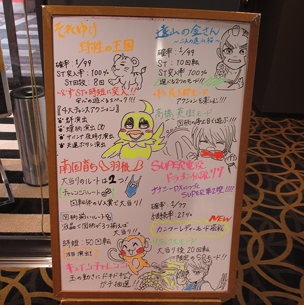 また、ホール内では最新機種のみどころが書かれている手書きのボードも目撃。パチンコとパチスロをより楽しめるような工夫に好感を抱いた。