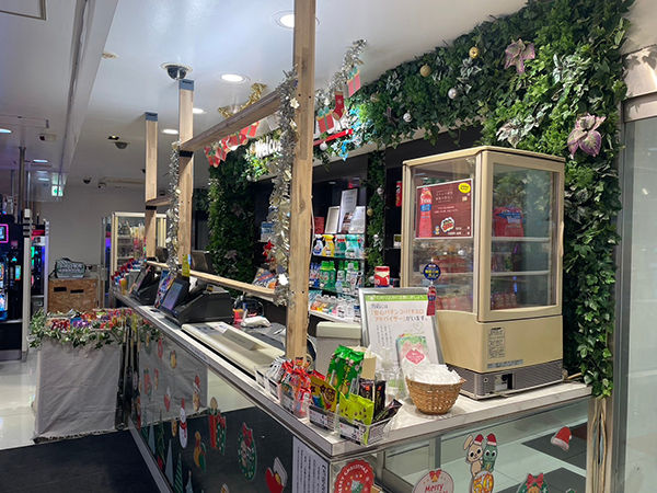 景品コーナーにはドリンク類やお菓子、日用品など多彩なアイテムが並んでおり、プレイヤーたちの興味を引いていた。