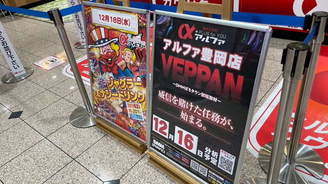 DMMぱちタウン取材班〝別班〟が威信を賭けて執り行う「VEPPAN」が、12月16日に「アルファ豊岡店」にて実施された。当日は25周年ということもあり、昼12時開店ながら開店時から180人が集まり、終日多くのファンたちで店内全体が活気に満ち溢れていた。果たしてどれほどの盛り上がりを見せてくれたのか、ここからはスロット全260台の詳細とともに、当日の店内の盛り上がりをチェックしていこう!
