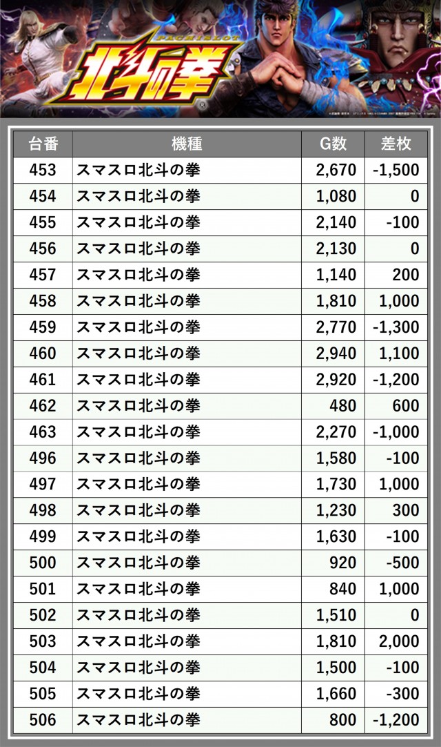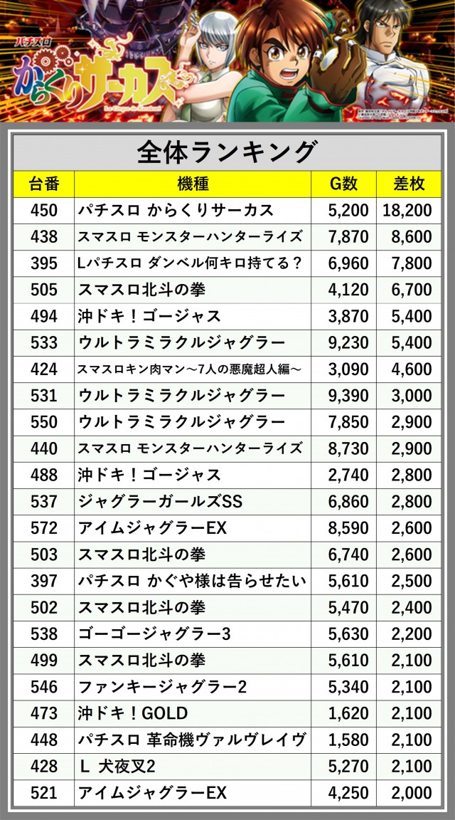 ※差枚数順に掲載しています