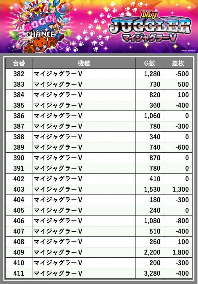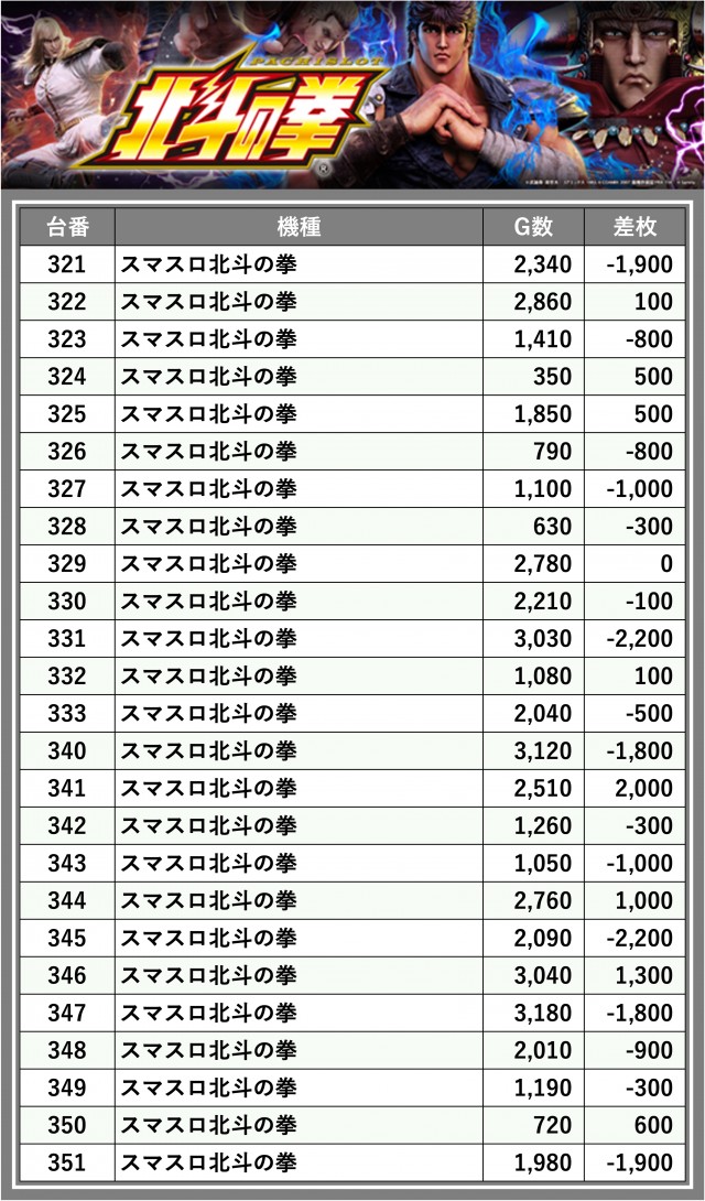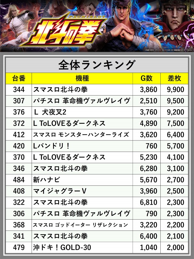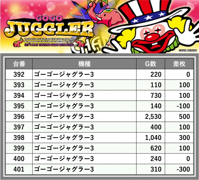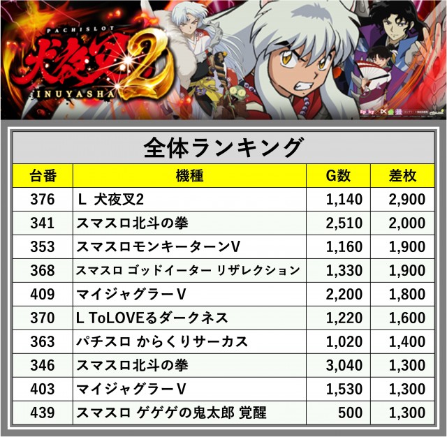 厳選された取材対象機種をはじめ、その他スロット全体から好記録が飛び出した!プレイヤーが楽しんだ1日を下記データにて振り返ってみて欲しい。