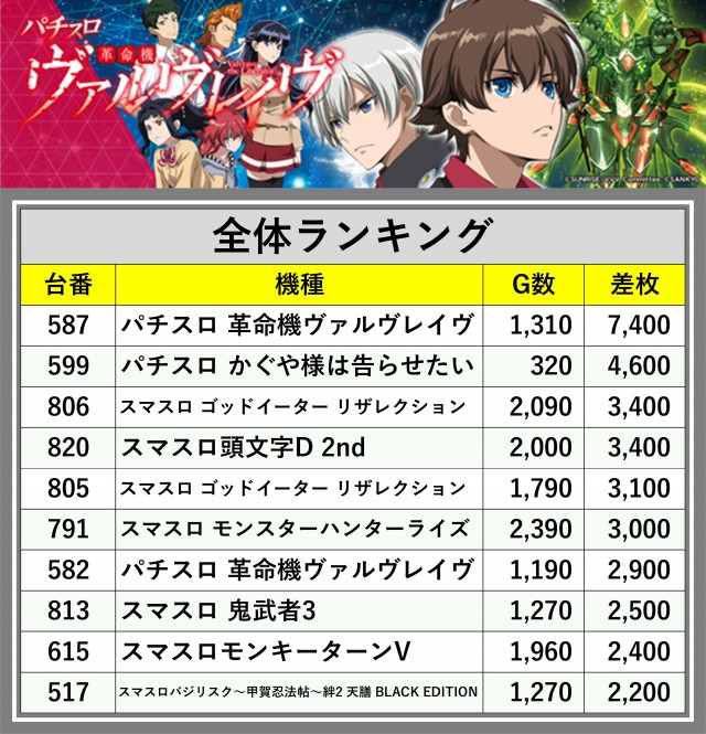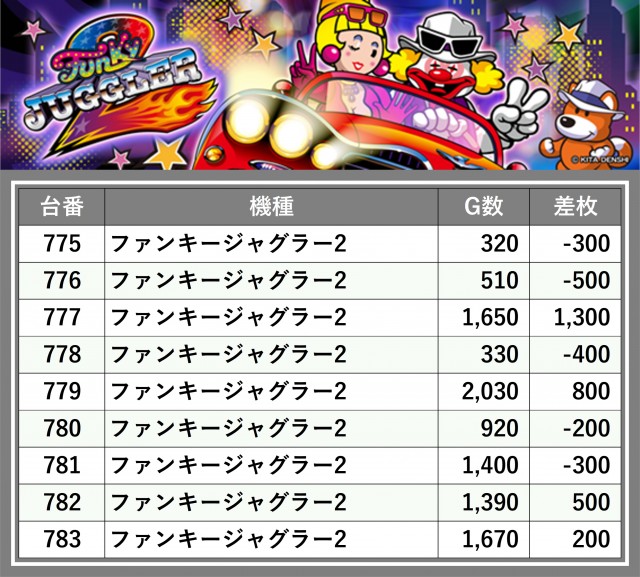 厳選された取材対象機種をはじめ、その他スロット全体から好記録が飛び出した!プレイヤーが楽しんだ1日を下記データにて振り返ってみて欲しい。