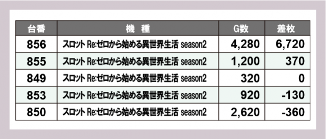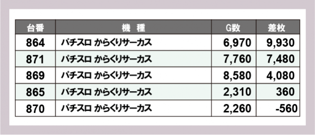 ※差枚数順に掲載しています