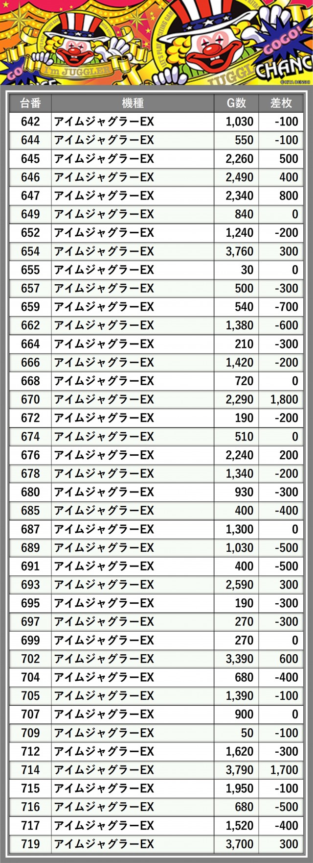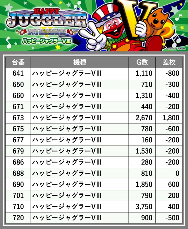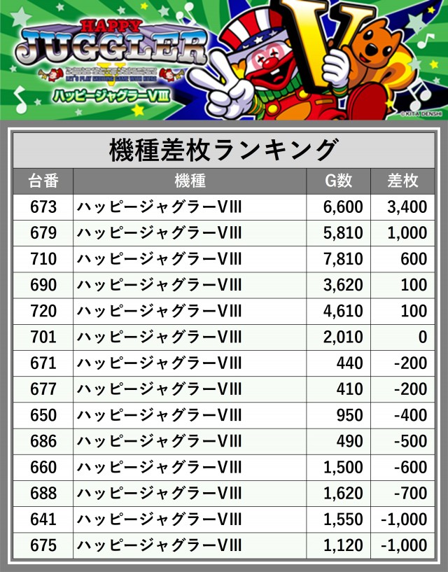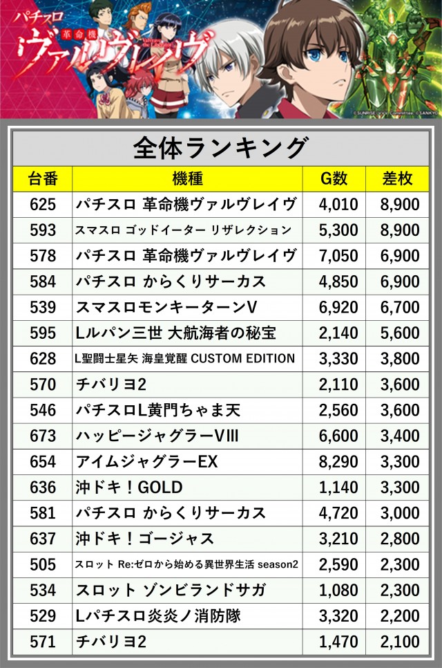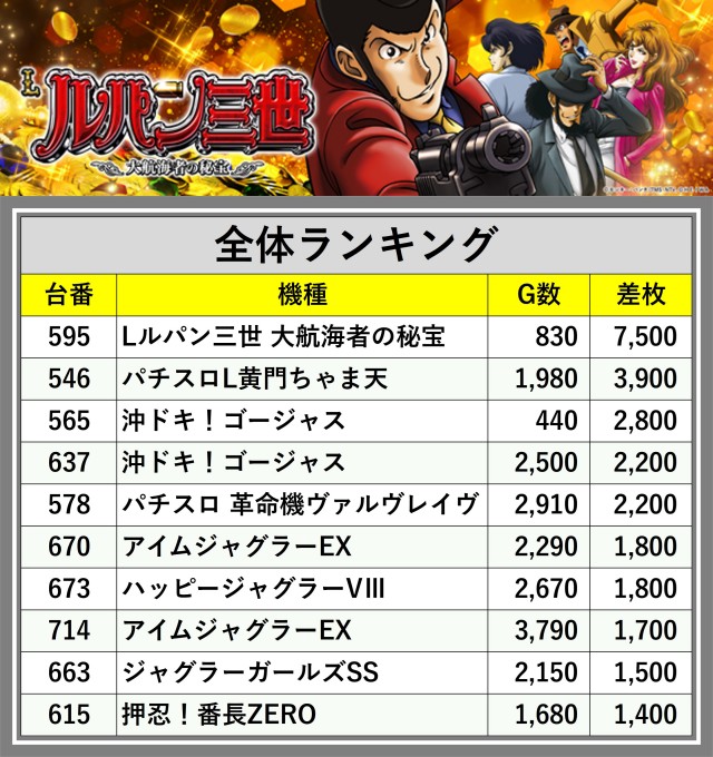 厳選された取材対象機種をはじめ、その他スロット全体から好記録が飛び出した!プレイヤーが楽しんだ1日を下記データにて振り返ってみて欲しい。