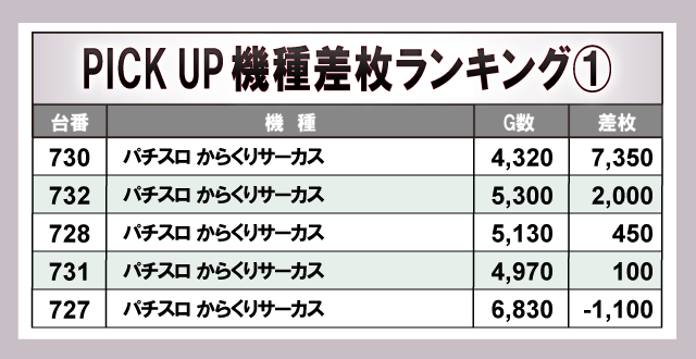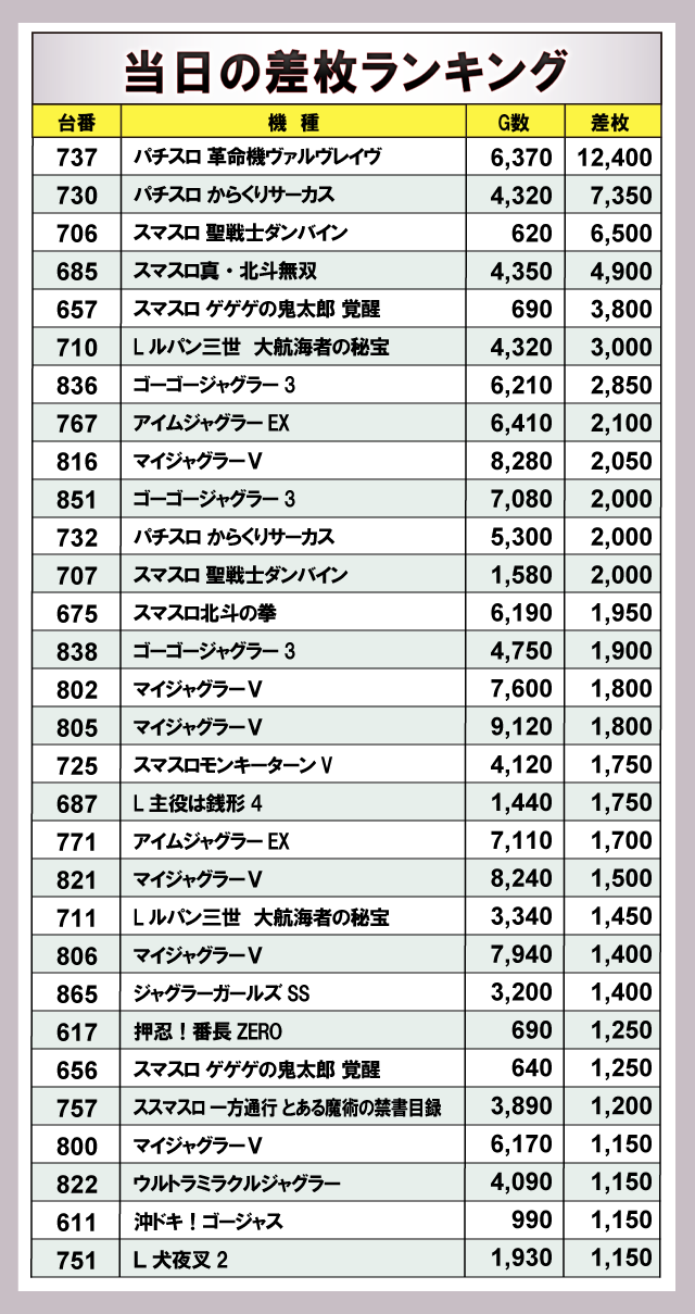 ※差枚数順に掲載しています。