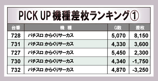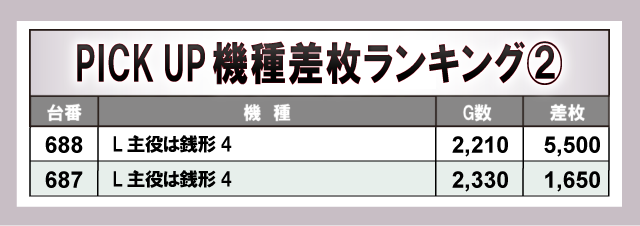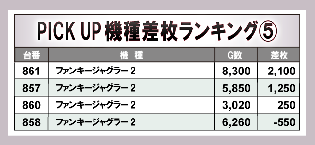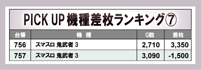上表の7機種は4桁プラス台が多数発生し、大きな熱気を生み出している。スマスロ機からメダル機まで各所で好況スポットが形成されており、打ちごたえのある状況が整っていた様子から、館内の盛り上がりに大きく貢献していたと言えるだろう。
