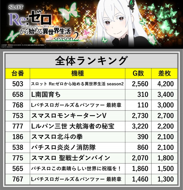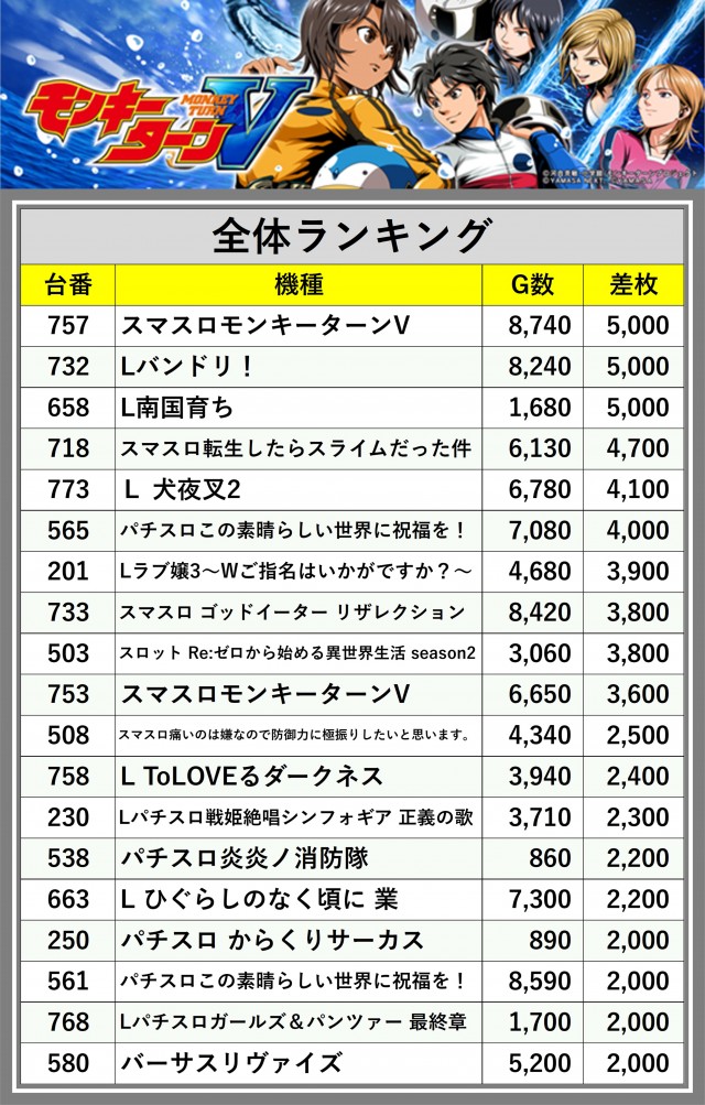 厳選された取材対象機種をはじめ、その他スロット全体から好記録が飛び出した!プレイヤーが楽しんだ1日を下記データにて振り返ってみて欲しい。