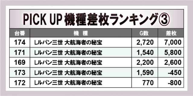 ※差枚数順に掲載しています。