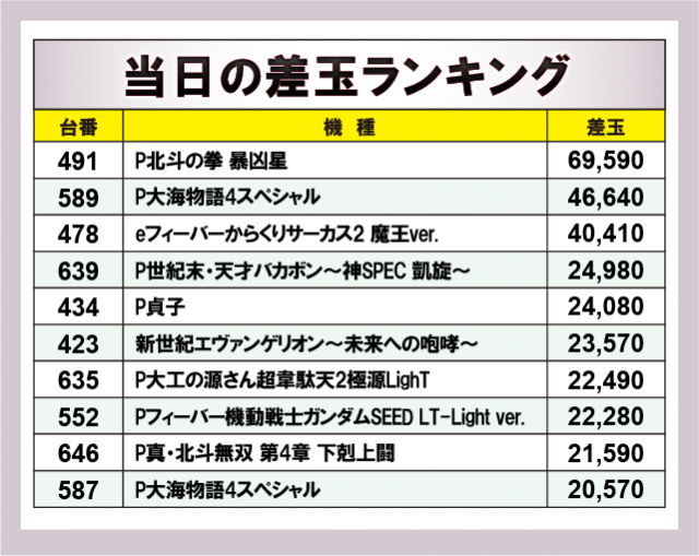 ※差玉数順に掲載しています。