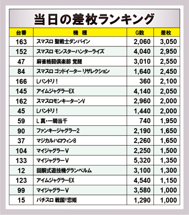 ※差枚数順に掲載しています。