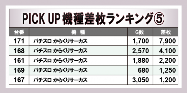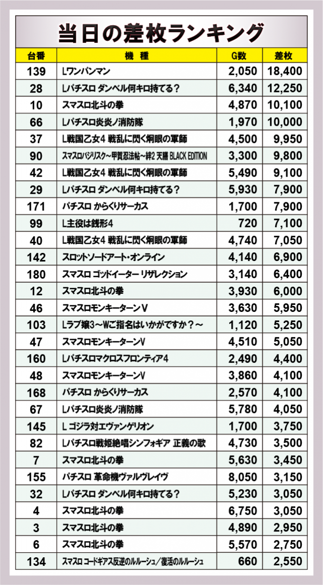 ※差枚数順に掲載しています。
