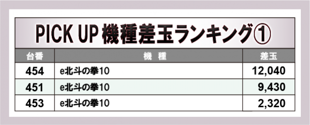 機種単位でみてみると『e北斗の拳10』『Pルパン三世 ONE COLLECTION』『P真・一騎当千~桃園の誓い~199LTver.』の3機種。定番人気機種から最新台まで十分な熱量を披露していたと言えよう。
