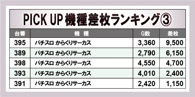 上表4機種がポテンシャルを存分に発揮し、コンスタントなボーナス当選が窺える内容となっている。万枚OVER台を筆頭に複数の4桁プラス台が発生し、ファンは有意義な時間を過ごせたことにより、同店の魅力に触れられたのは大きな収穫と言えるだろう。