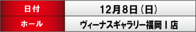 12月8日、『ヴィーナスギャラリー福岡Ⅰ店』にて「キングフッキー君 独占取材」が実施された。この日で連続4日目となるわけだが、初日から連日好成績を出し続けており、今回も期待が掛かる一戦となった。さっそく以下から詳細データとともに、店内の様子をみていこう!