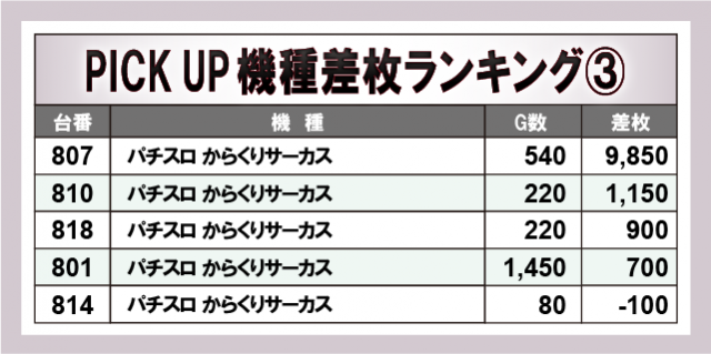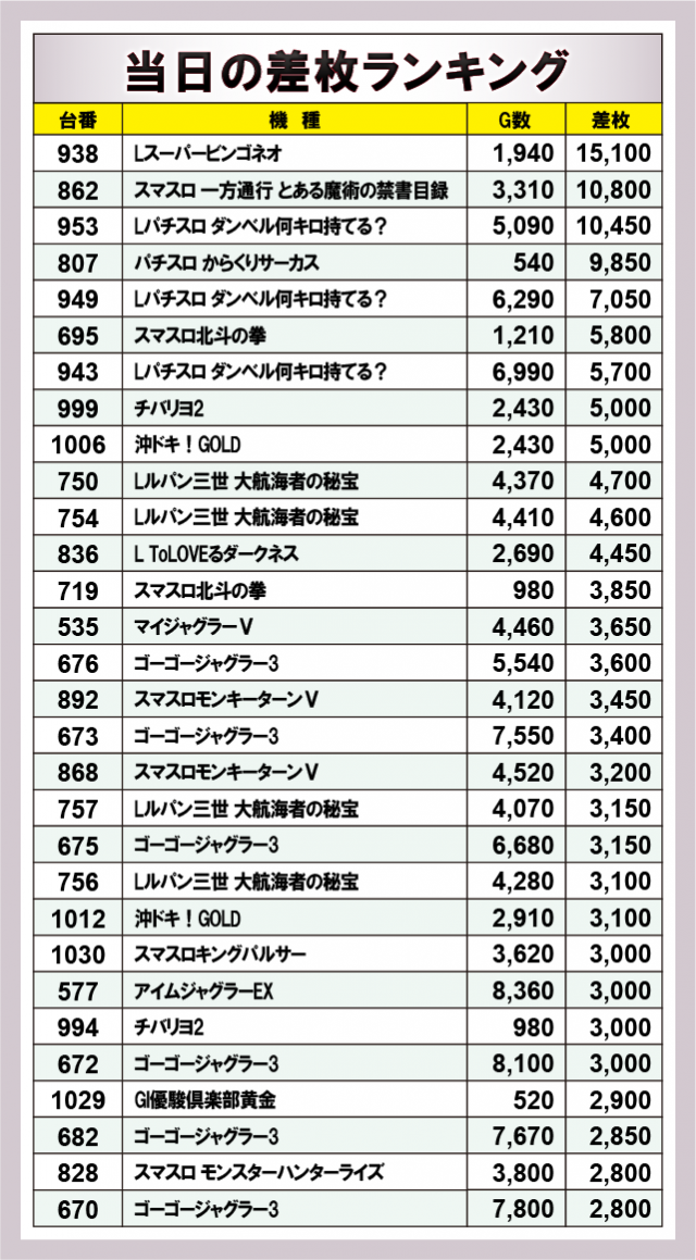 ※差枚数順に掲載しています。