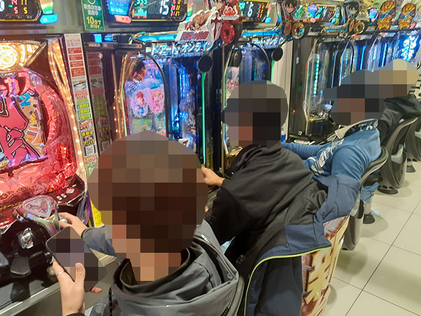 18時ごろの1円パチンコでは「P ゴジラ対エヴァンゲリオン セカンドインパクト G」や「新世紀エヴァンゲリオン〜未来への咆哮〜」、「P魔法少女まどか☆マギカ3」で好調なプレイヤーが見受けられ、時折見せる嬉しそうな様子が印象に残っている。