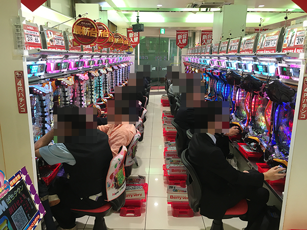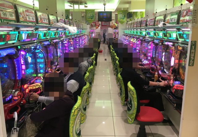 19時ごろの4円パチンコをみてみると、新台の「ぱちんこCR北斗の拳7 転生」や「CRぱちんこテラフォーマーズ」などに、笑みを浮かべているプレイヤーを確認。