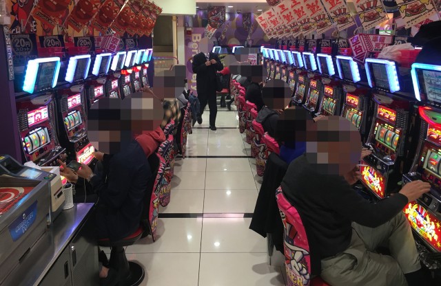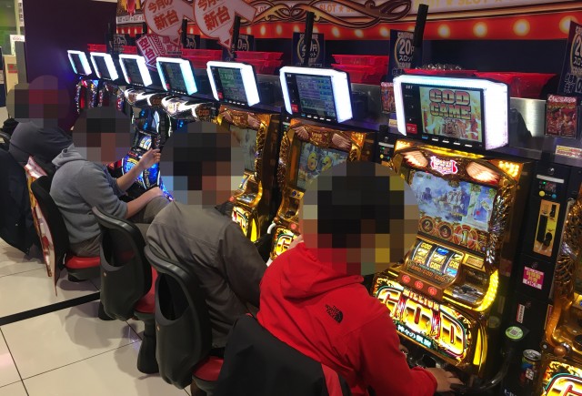 「ミリオンゴッド-神々の凱旋-」や「バジリスク~甲賀忍法帖~絆」などでも、プレイヤーたちは笑顔で遊技をおこなっていた。