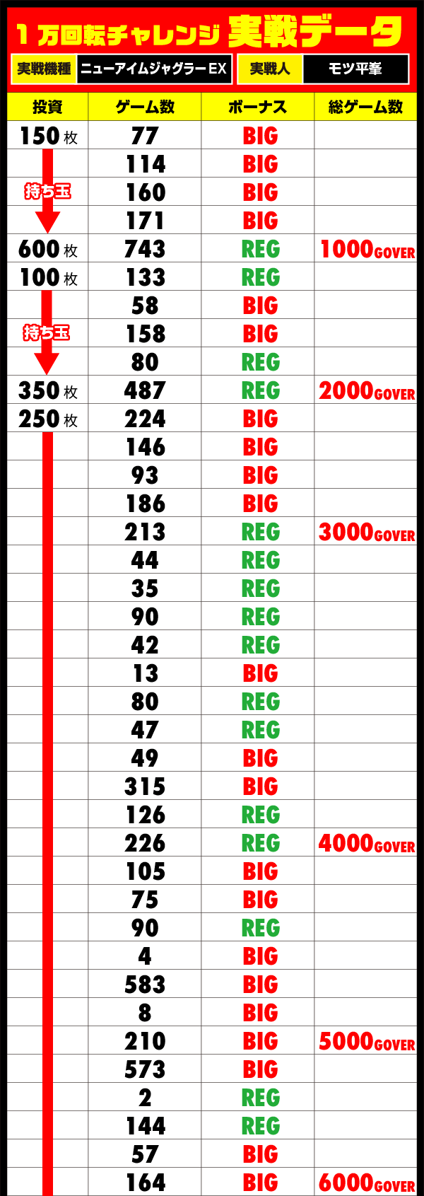 本人いわく、8000G付近が鬼門となっており、ペースがみだれてしまうとのこと。