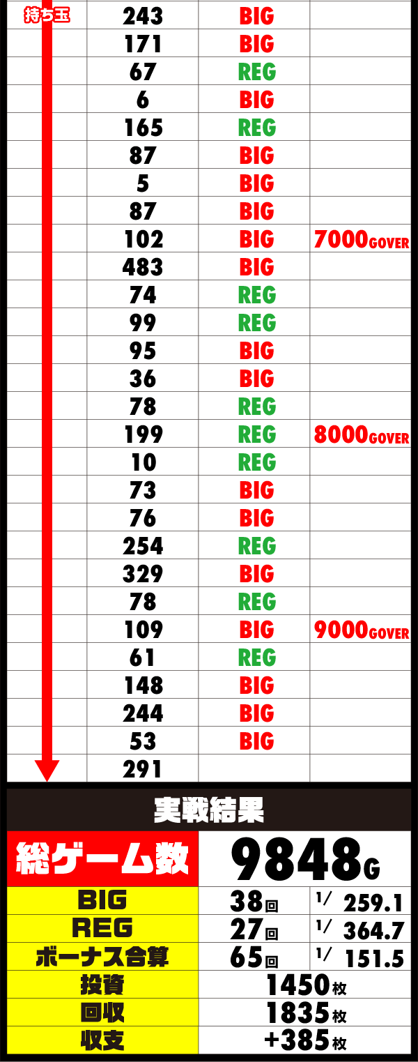 8000Gを超えたあたりで不安が的中。終了時間が迫るなかで、BIGが連発してしまい大きく時間を消費してしまう。