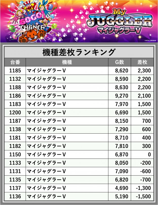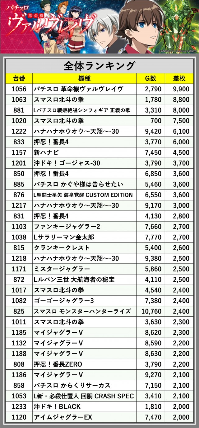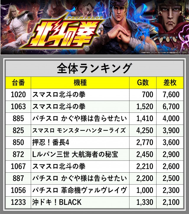 厳選された取材対象機種をはじめ、その他スロット全体から好記録が飛び出した!プレイヤーが楽しんだ1日を下記データにて振り返ってみて欲しい。