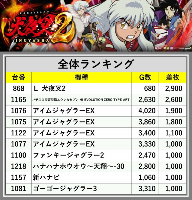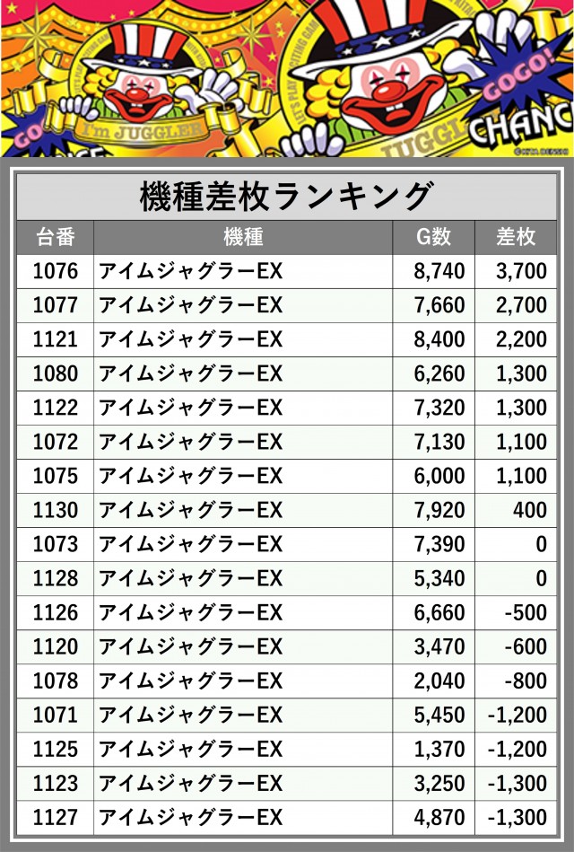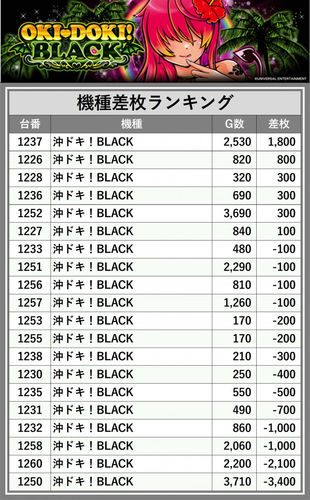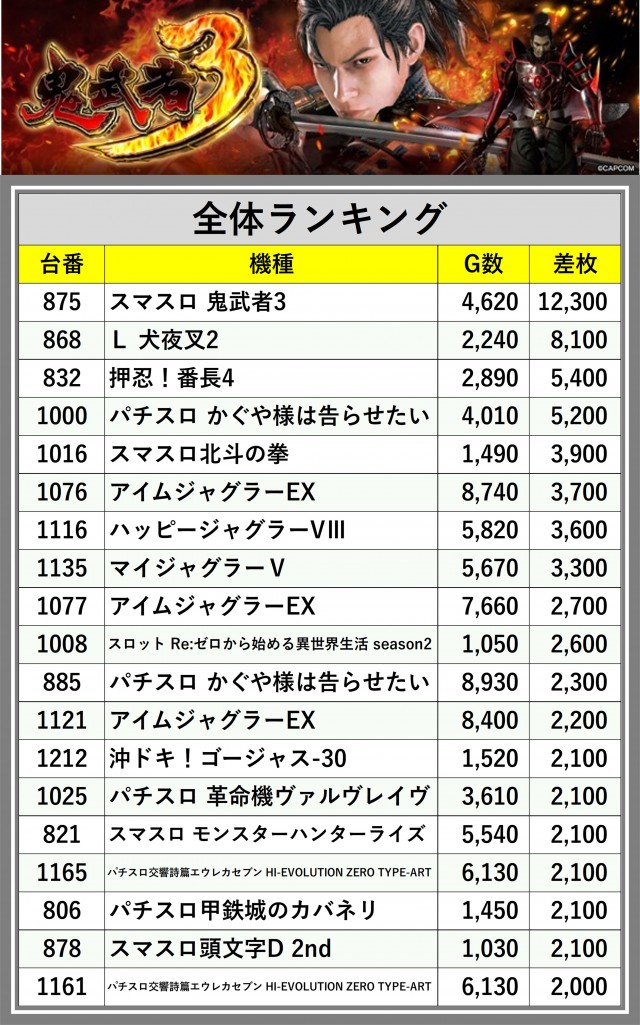 ※差枚数順に掲載しています