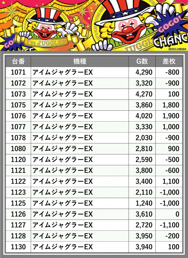 ※台番順に掲載しています