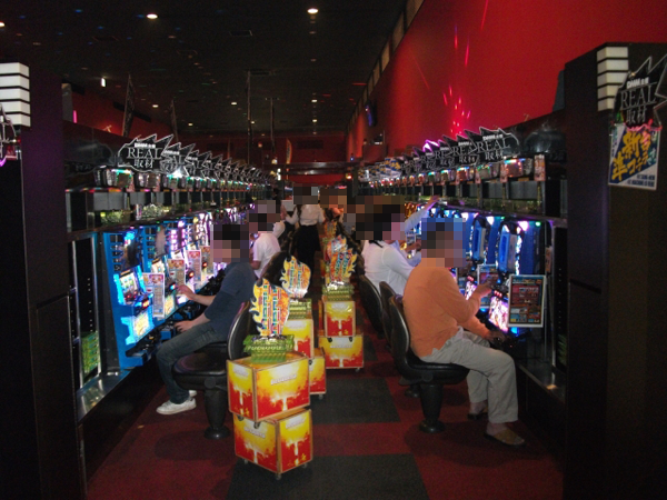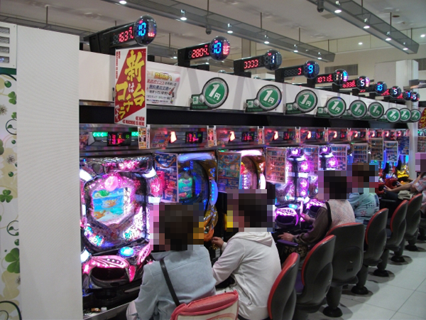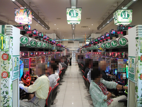 1円パチンコは空き台がほとんど見られないほど大盛況。