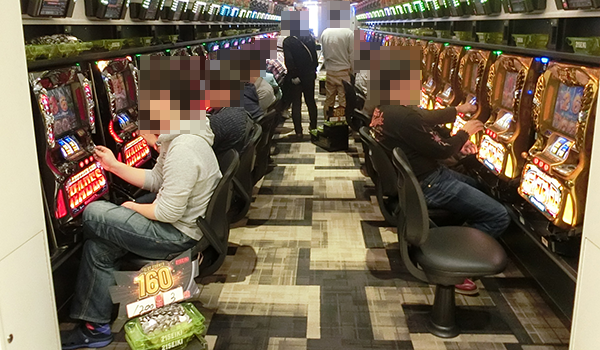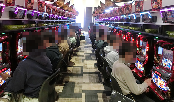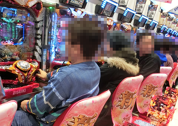 14時頃の4円パチンコでは、新台の「ぱちんこCR北斗の拳7 転生」や「ぱちんこCR真・北斗無双」など、多くの機種が盛況。シマ内に広がる鮮やかな光景は、満足度の高さをあらわしているようであった。