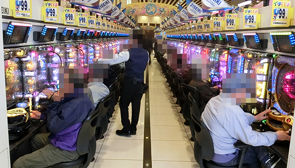 定番機種である海物語シリーズの支持も厚く、笑顔のプレイヤーが多い。