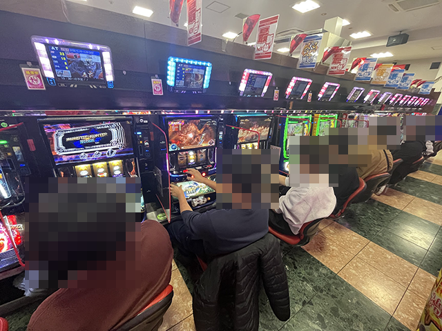 取材時に、設置されている3台がすべて埋まっていた「スマスロ モンスターハンターライズ」。
