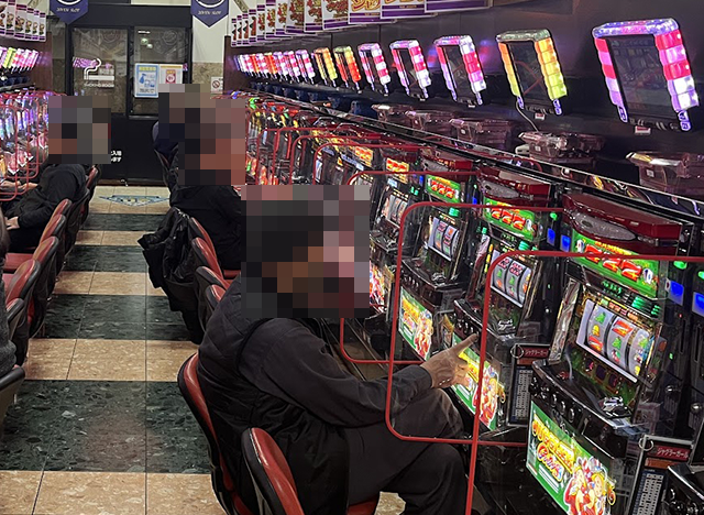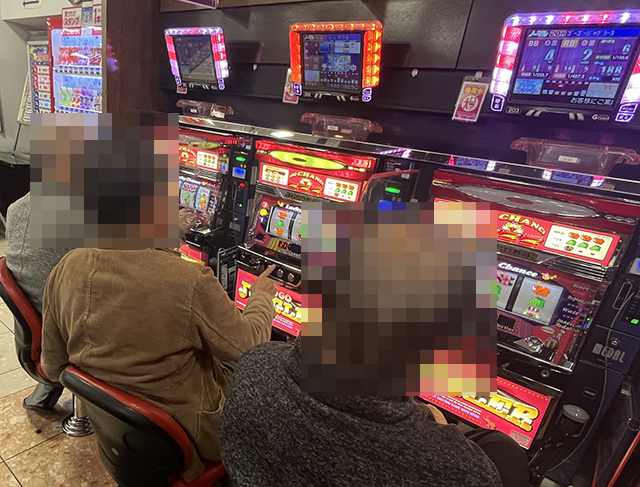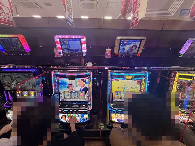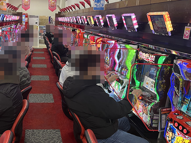 パチスロコーナーをみてみると、AT機からボーナスタイプまで、さまざまな機種にプレイヤーの笑顔があった。