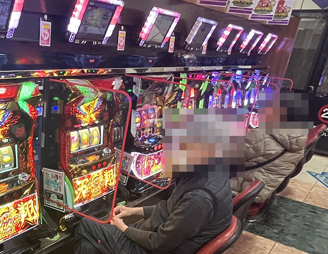 「ジャグラーガールズSS」や「沖ドキ!BLACK」でも、プレイヤーは1箱以上の持ち玉を使って遊技中。