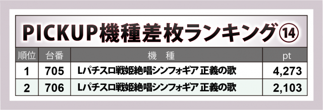さらに、『L聖闘士星矢 海皇覚醒 CUSTOM EDITION』312番台の+1万3千4百弱、『押忍!番長4』756番台が+6千4百超、 『スマスロ ゲゲゲの鬼太郎 覚醒』968番台が+6千4百弱、『パチスロハイパーラッシュ』995番台が+5千3百超、『スマスロバジリスク~甲賀忍法帖~絆2 天膳 BLACK EDITION』716番台が+4千9百弱、『パチスロディスクアップ2』1003番台が+4千5百弱、『Lパチスロ炎炎ノ消防隊』983番台が+4千3百弱、『L ゴジラ対エヴァンゲリオン』981番台が+4千2百超と、メダル機にも好出玉が認められた。