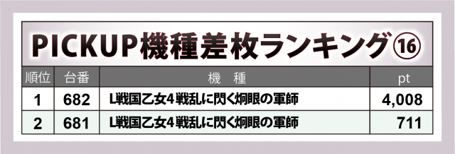 『L戦国乙女4 戦乱に閃く炯眼の軍師』4台も半数の2台がプラス。682番台の+4千超という数字が光った。