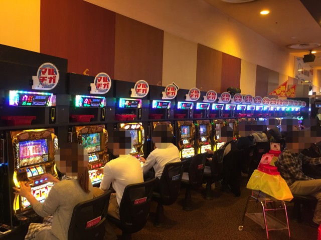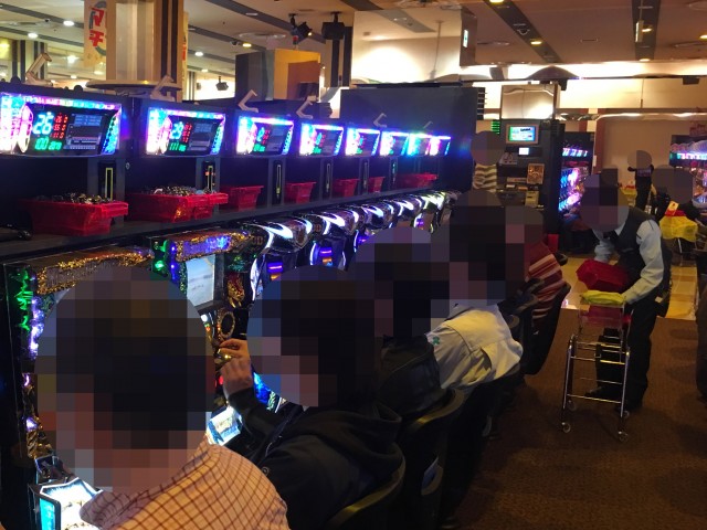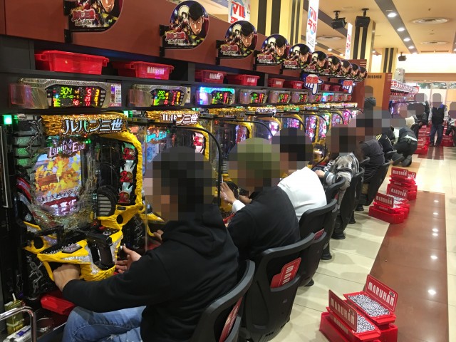 21.27円パチスロは、「バジリスク~甲賀忍法帖~絆」や「押忍!サラリーマン番長」といった定番機種を中心に好評。明るい雰囲気につつまれており、うれしそうな表情のプレイヤーが多かった。