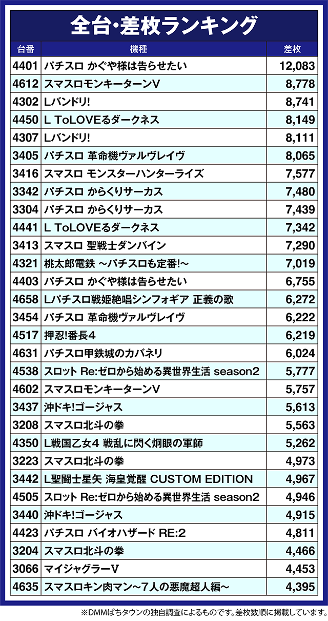「パチスロ かぐや様は告らせたい」の4401番台が12,083pt!