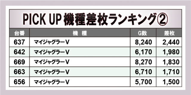 優秀機種として取り上げた5機種では、なかでも『ジャグラー』シリーズから4桁プラス台が複数台発生し、遊技していたファンは相当な手応えを感じていたのではないだろうか。7~8千回転OVERという目に見える数字も確認でき、ポテンシャルを秘めていたのは間違いないだろう。
