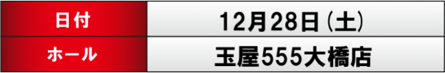 12月28日、『玉屋555大橋店』にて「たまピー来店取材」が実施された。この日は玉屋全店一斉実施ということで駆けつけたファンは大きな期待感を持って開店の瞬間を待ちわびていたのが印象的だ。果たしてどのような1日になったのか…さっそく詳細データとともに、店内の様子をお伝えしていくぞ!