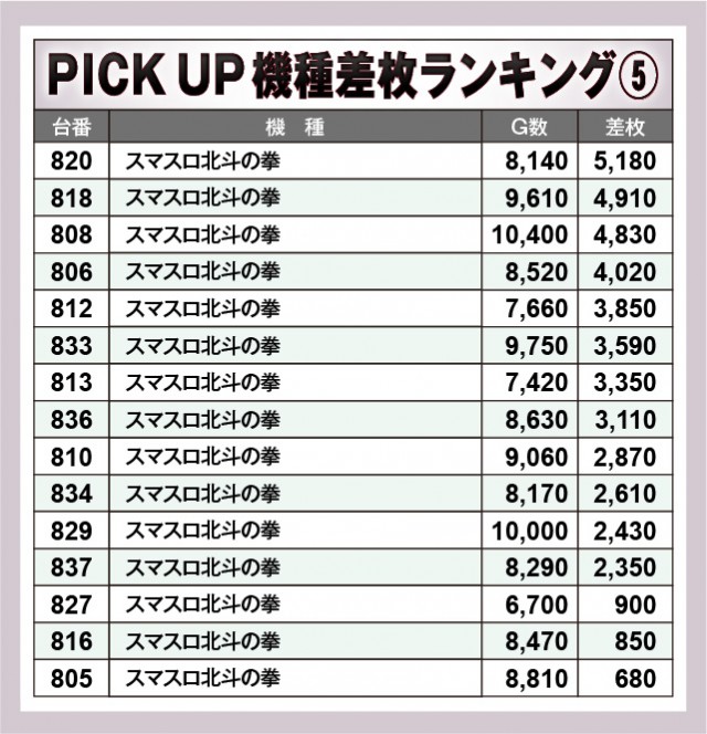 15周年という記念すべき日の翌日に実施された本企画だが、当日は8台の万枚OVERが発生。その後ろには9,000枚OVERがズラリと並んでおり、館内の凄まじい熱気が窺えるばかり。実際に上表は5,000枚OVERからとなっているため、遊技していたファンたちの気持ちは高まっていたはずだ。もちろん終日を通して打ち込まれており、しっかりと手応えを感じていたのは間違いない。