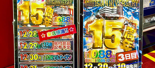 12月29日、「アミューズ豊中店」にて「英雄のリアル」が実施された。前日にグランドオープンから15周年を迎えたばかりの同店は、これが英雄初参戦となっている。その期待感の高さからか、朝から集まったファンは457人となっており、スペシャルレポーターとして参戦したはっけは高揚感を抑えきれなかったという。果たして初陣はどのような状況になったのか…さっそく詳細データとともに、店内の様子をお伝えしていこう!
