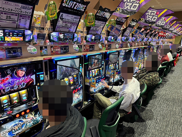 1000円/89枚パチスロに目を向けると「スマスロ北斗の拳」や「スマスロ モンスターハンターライズ」が微笑ましい状況。機種性能を最大限に発揮するプレイヤーが複数見られた。